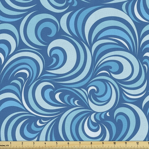 Japanese Wave Fabric By The Yard Traditional Eastern Pattern With Waves Of Water Foam Splashes Decorative Upholstery Fabric For Sofas And Home Accents 3 Yards Pale Blue Navy Blue By Ambesonne